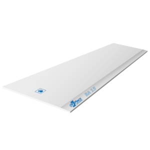 Plaque de plâtre A / NF EN 520 - 1200 / 2000 / 15 / à bords longitudinaux amincis, BA 15 "PLACO", constituée d'une âme en plâtre d'origine naturelle enveloppée et liée aux deux feuilles de carton fort.