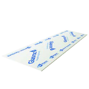 Plaque de plâtre GM-FH1 / NF EN 15283-2 - 1200 / 2800 / 12,5 / à bords longitudinaux amincis, Glasroc X 13 "PLACO", constituée d'un noyau de plâtre revêtu sur les deux faces avec fibre de verre avec traitement hydrophobe.
