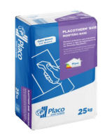 Mortier polymérique à prestations élevées renforcé avec des fibres, Placotherm Base, "PLACO", couleur blanche, composé de ciment blanc, charges minérales, résines hydrofuges redispersables, fibres et additifs spéciaux, à appliquer à la truelle, pour traitement des joints et rebouchage superficiel de plaques dans des systèmes Placotherm, type GP CSIII W2, selon NF EN 998-1.