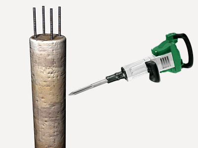 Recépage du pieu en béton armé, de 35 cm de diamètre, par piquage du béton en tête du pieu qui ne réunit pas les caractéristiques mécaniques nécessaires, avec compresseur avec un marteau pneumatique, et chargement des décombres provenant du recépage dans le camion ou la benne.