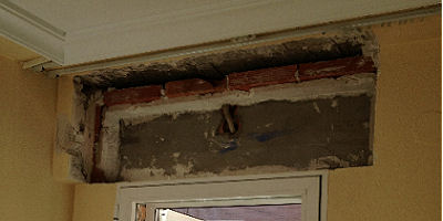 Pose d'une ossature de coffre de volet roulant, avec du plâtre B1.