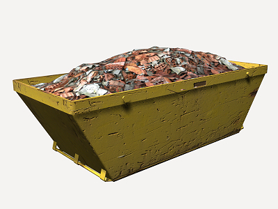 Charge et échange de container de 7 m³, pour la collecte de déchets inertes de briques, tuiles et matériaux en terre cuite, produits sur chantier de construction et/ou de démolition, placé sur chantier à pied de charge, y compris le service de remise et la location.