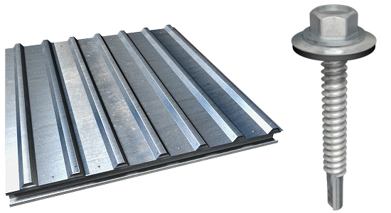 Tôle profilée en acier galvanisé prélaqué, de 0,6 mm d'épaisseur, avec nervures entre 40 et 50 mm de hauteur de crête, écartées entre 250 et 270 mm et inertie entre 13 et 21 cm4, selon NF EN 14782.