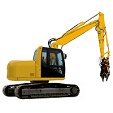 Pelleteuse à chenilles, avec cisaille de démolition.